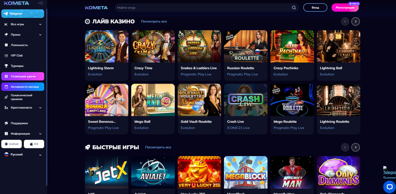 - Эксклюзивные игры — уникальные слоты, разработанные специально для Kometa Casino, с повышенными коэффициентами выплат и бонусными раундами